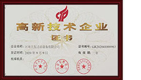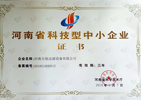 2020年9月9日——河南大張過濾設備有限公司榮獲“高新技術企業(yè)”證書